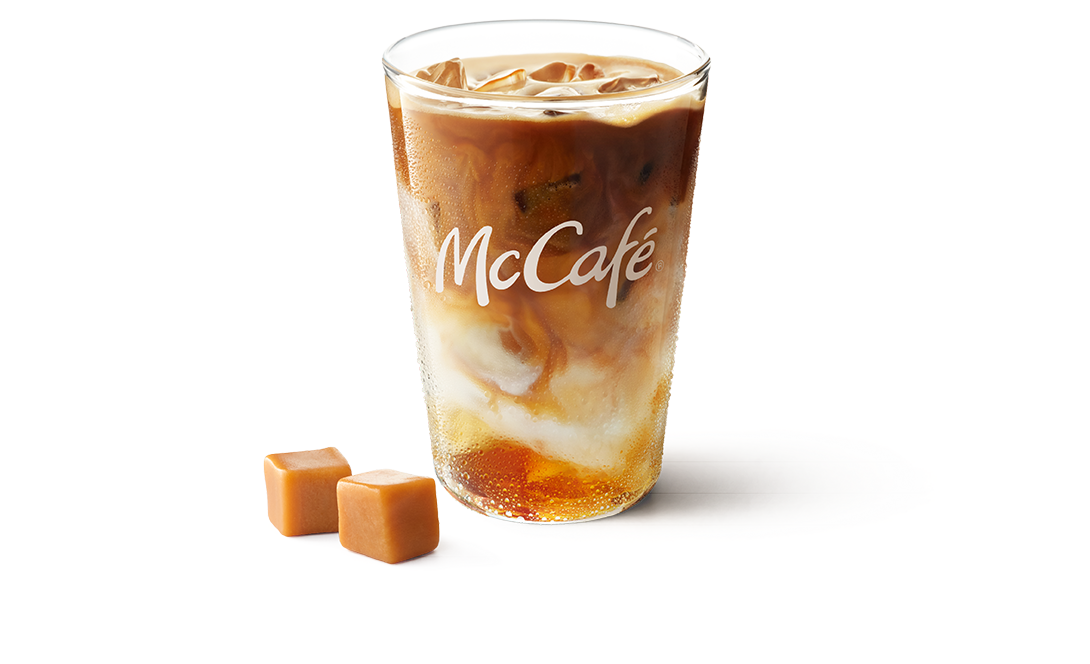 Zanurz się w połączeniu intesywnego espresso, delikatnego mleka i kostek lodu z aksamitnym syropem o smaku słonego karmelu oraz słodkim syropem o smaku waniliowym. Przypływ przyjemności to mało powiedziane! Spróbuj też wersji z bitą śmietanką i gęstym sosem o smaku karmelowym.