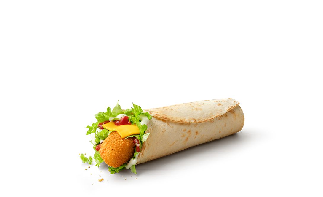Pyszna i poręczna przekąska! W środku miękkiej, pszennej tortilli znajduje się soczysty kawałek kurczaka, świeża sałata, ser topiony cheddar, a całość dopełniają sos kanapkowy oraz ketchup.