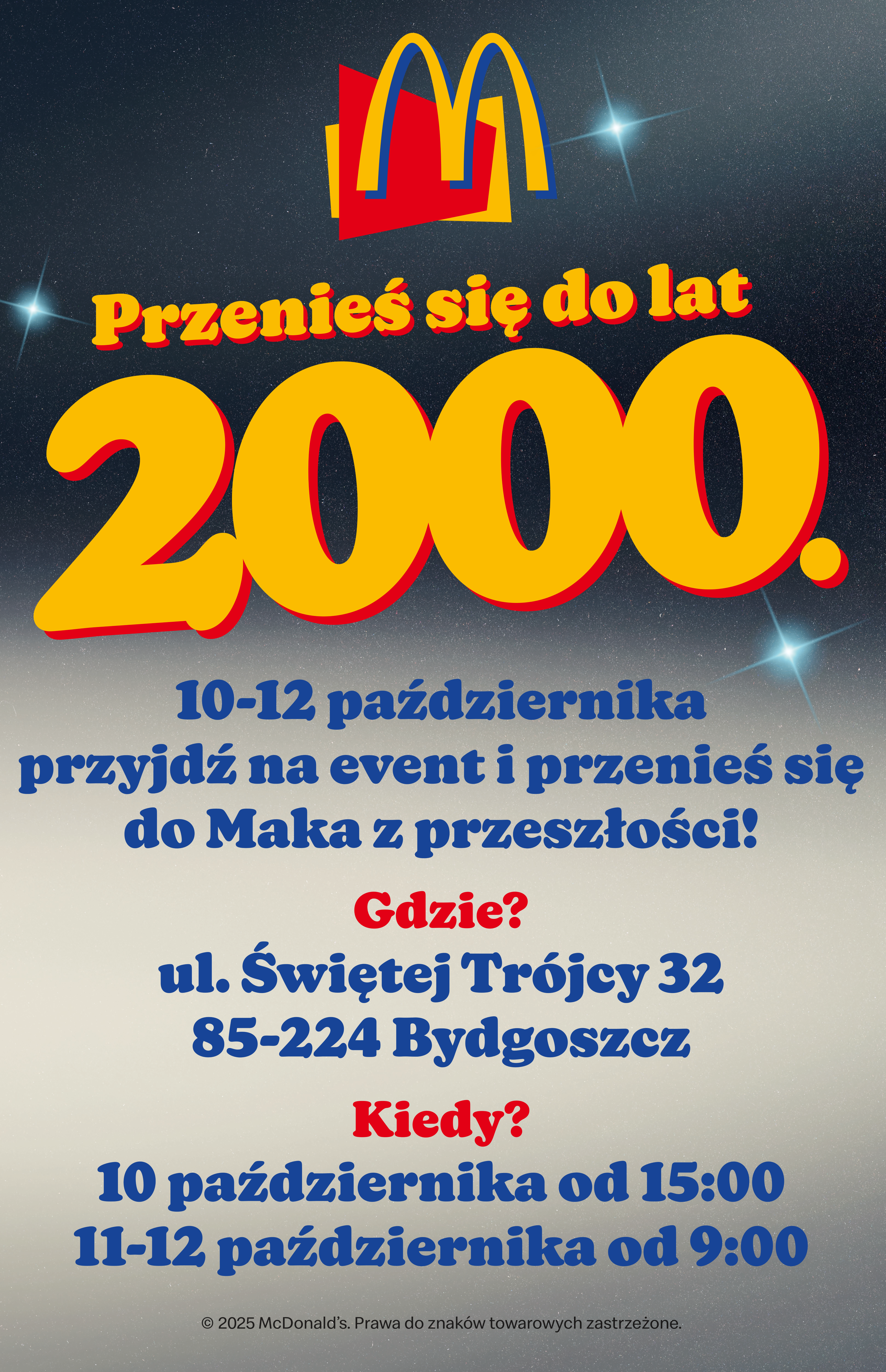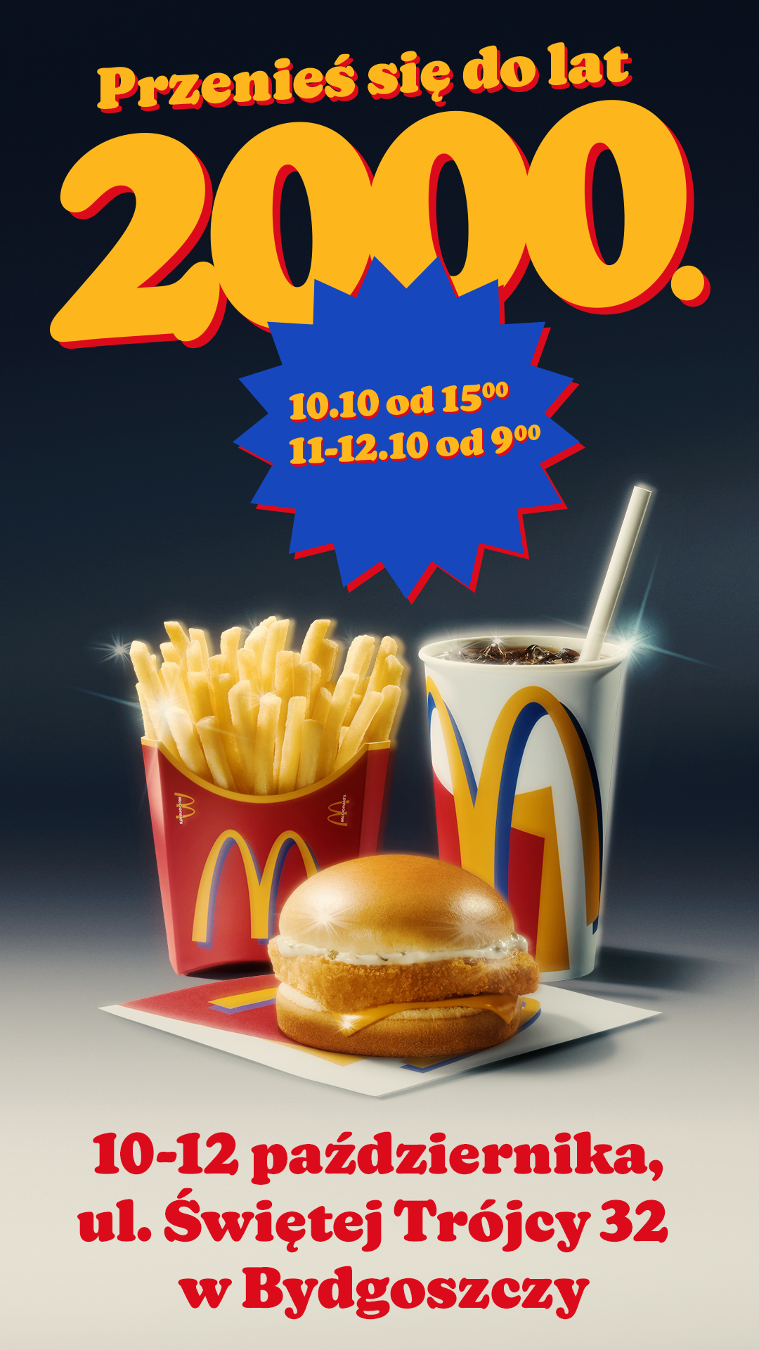 Podróż w czasie? To możliwe! Restauracja McDonald’s przy ul. Świętej Trójcy 32 w Bydgoszczy już w najbliższy weekend zamieni się w prawdziwy wehikuł czasu, przenosząc gości w sentymentalną podróż do szalonych lat 2000. Wstęp dla wszystkich gości jest bezpłatny.