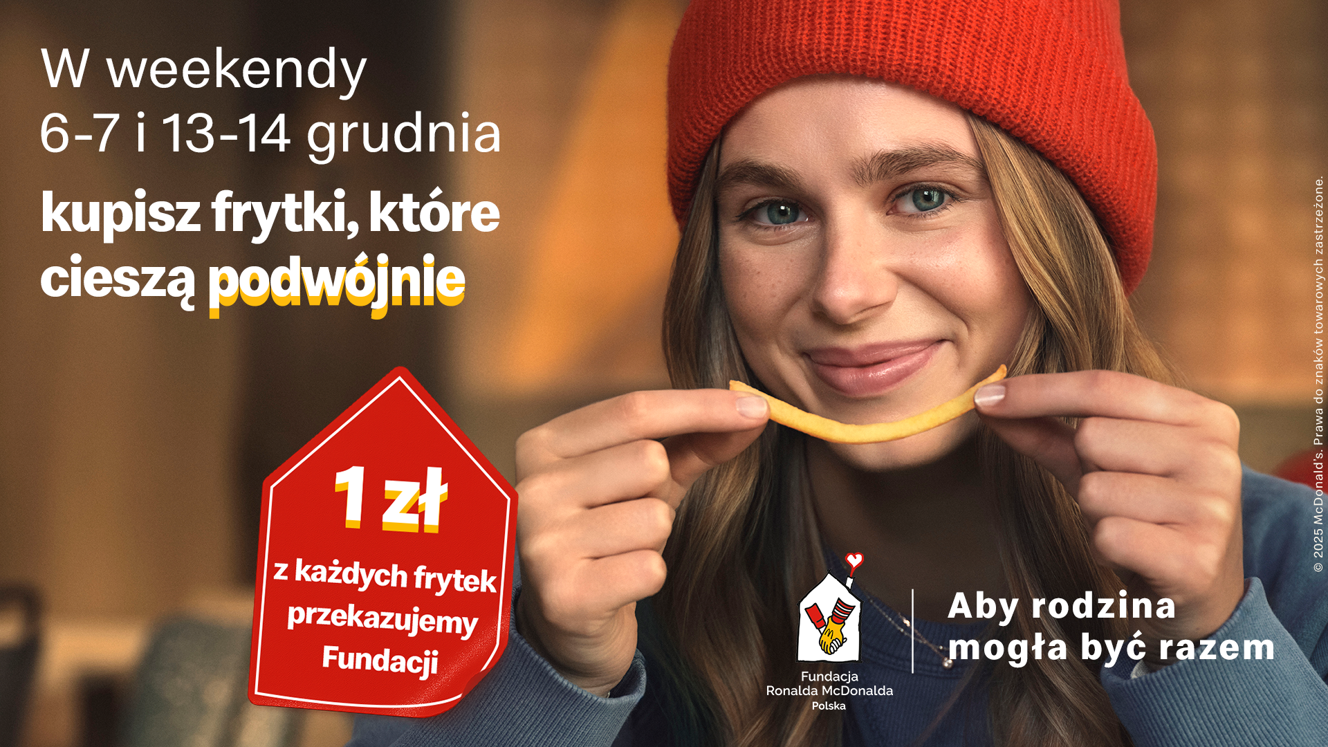 „McHappy Day” to akcja, która od wielu lat jest znana na całym świecie, również w Polsce. W tym roku jej głównym przesłaniem jest hasło „Są frytki, które cieszą podwójnie”, które podkreśla, że zakup dobrze znanych i lubianych frytek może nieść podwójną radość, stając się nie tylko przyjemnością dla gości, ale także prostym sposobem na pomaganie i niesienie dobra. Akcja odbywa się w pierwsze dwa weekendy grudnia (6-7 oraz 13-14). Wtedy McDonald’s przekaże złotówkę z każdej sprzedanej porcji frytek – niezależnie od formy zakupu czy rozmiaru – na rzecz Fundacji Ronalda McDonalda. Dodatkowo w tygodniu pomiędzy weekendami również można dołożyć swoją cegiełkę. W aplikacji McDonald’s pojawią się specjalne kupony na zakup frytek z oznaczeniem „kupuję-pomagam”, które pozwolą włączyć się w inicjatywę. Wystarczy jedno użycie kuponu, a odpowiednia kwota zostanie przekazana na konto Fundacji.