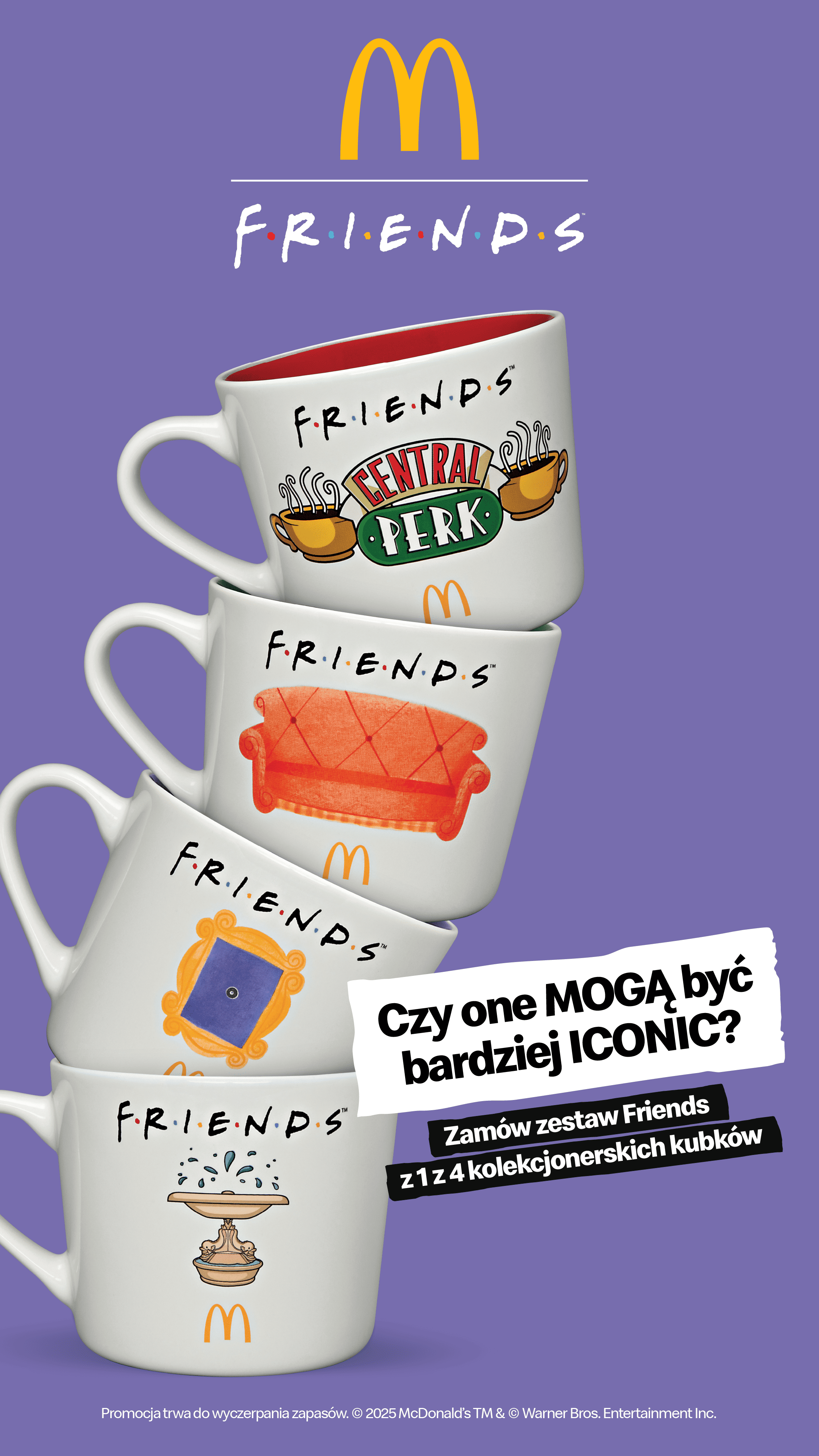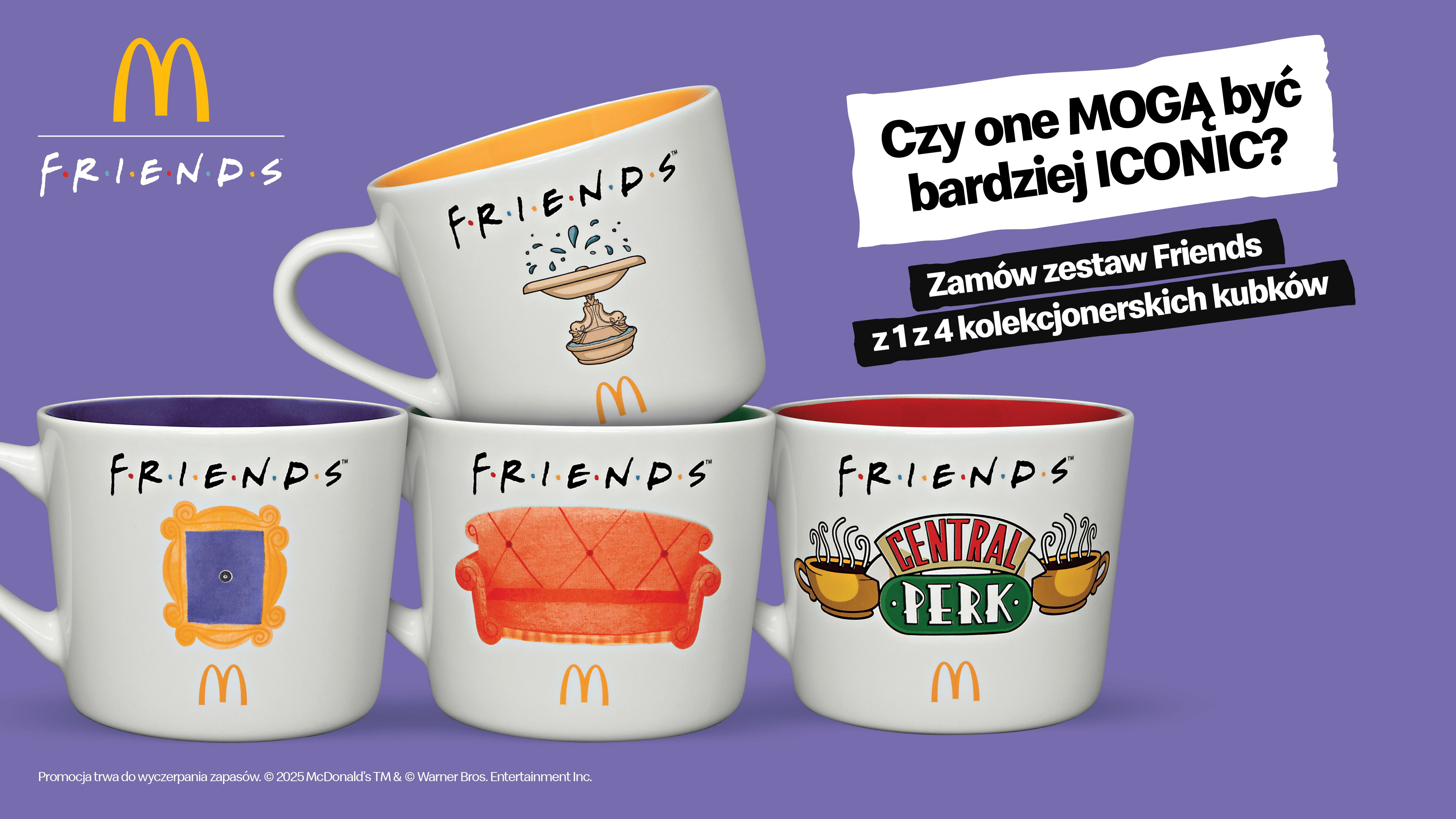 Każdy łyk z kubka inspirowanego kultowym serialem Friends to jak powrót na legendarną kanapę z Central Perk - pełną śmiechu, rozmów i historii, które nigdy się nie nudzą. Teraz ten wyjątkowy klimat mogą poczuć wszyscy fani paczki z Nowego Jorku i… złotych łuków. Od dziś, zamawiając Zestaw Friends w McDonald’s, można zgarnąć jeden z czterech unikatowych kubków. Brzmi to jak... spełnienie marzeń każdego wielbiciela serialu!