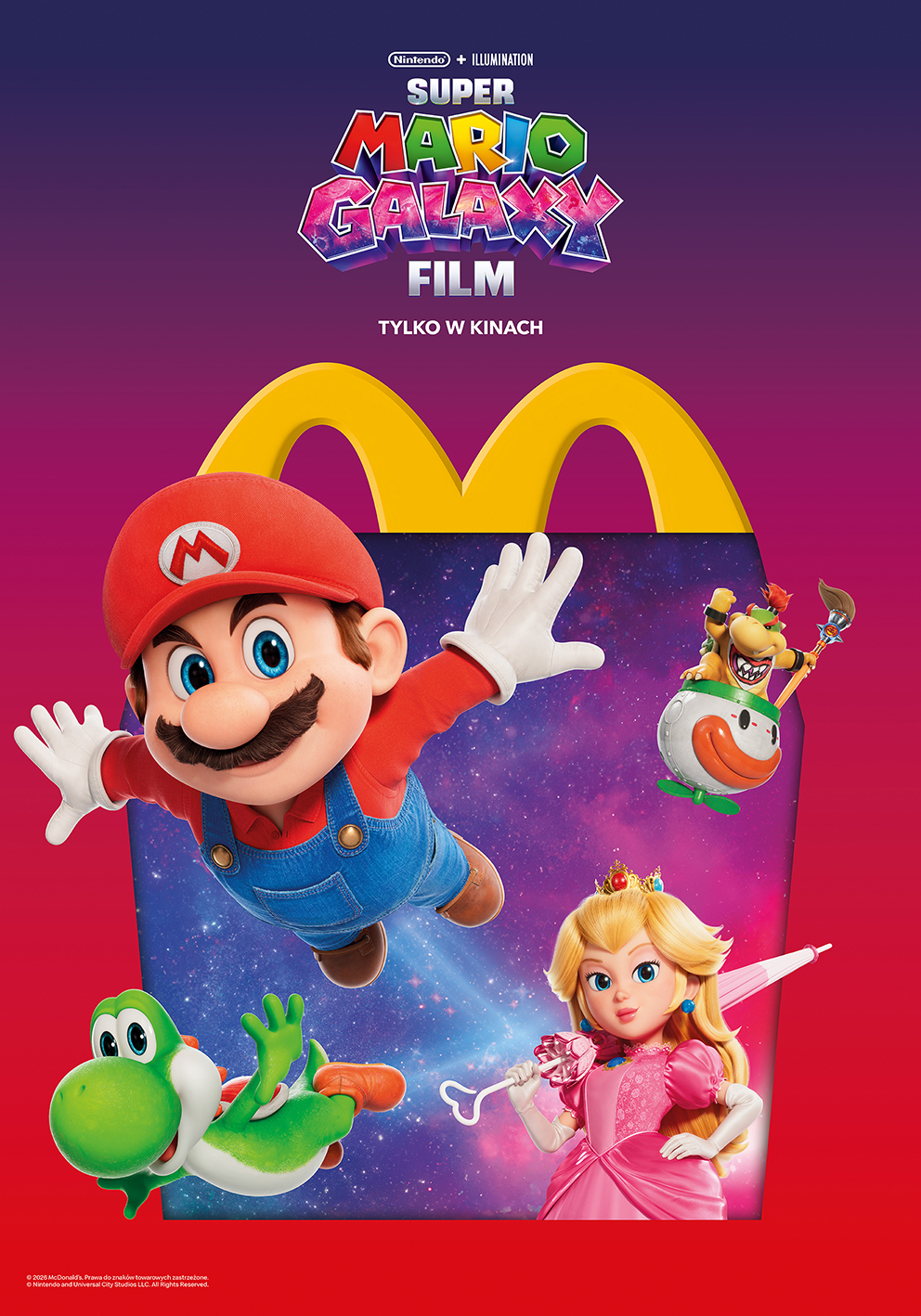 Galaktyczna przygoda właśnie się rozpoczyna! Od dziś na fanów kultowego włoskiego hydraulika i jego kompanów w zestawach Happy Meal czeka łącznie aż 12 kolekcjonerskich figurek. Wszystko za sprawą partnerstwa McDonald’s z twórcami „Super Mario Galaxy Film”. Alright. Let’s-a go!
